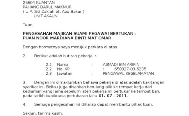 Surat pengesahan jawatan contoh 1. Kelewatan ini memberi contoh yang tidak baik.